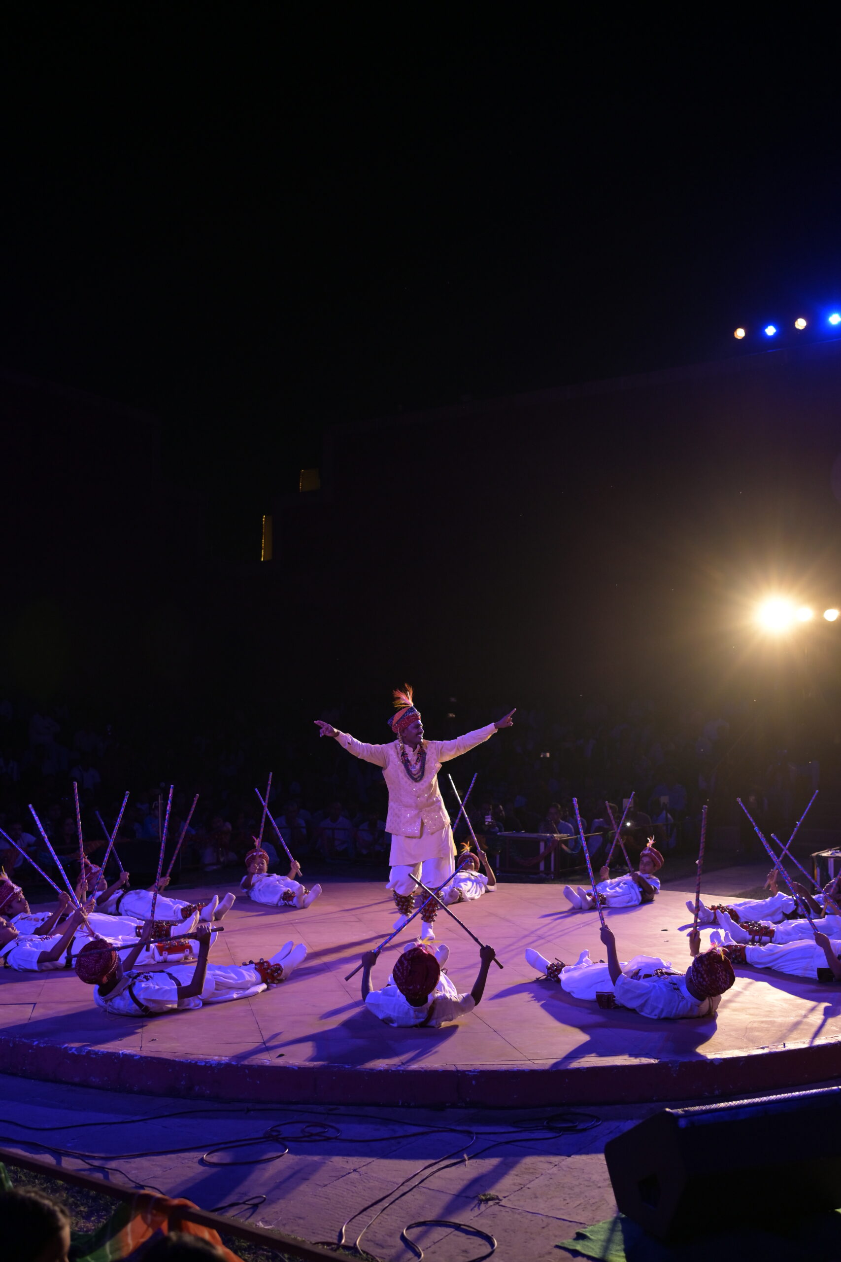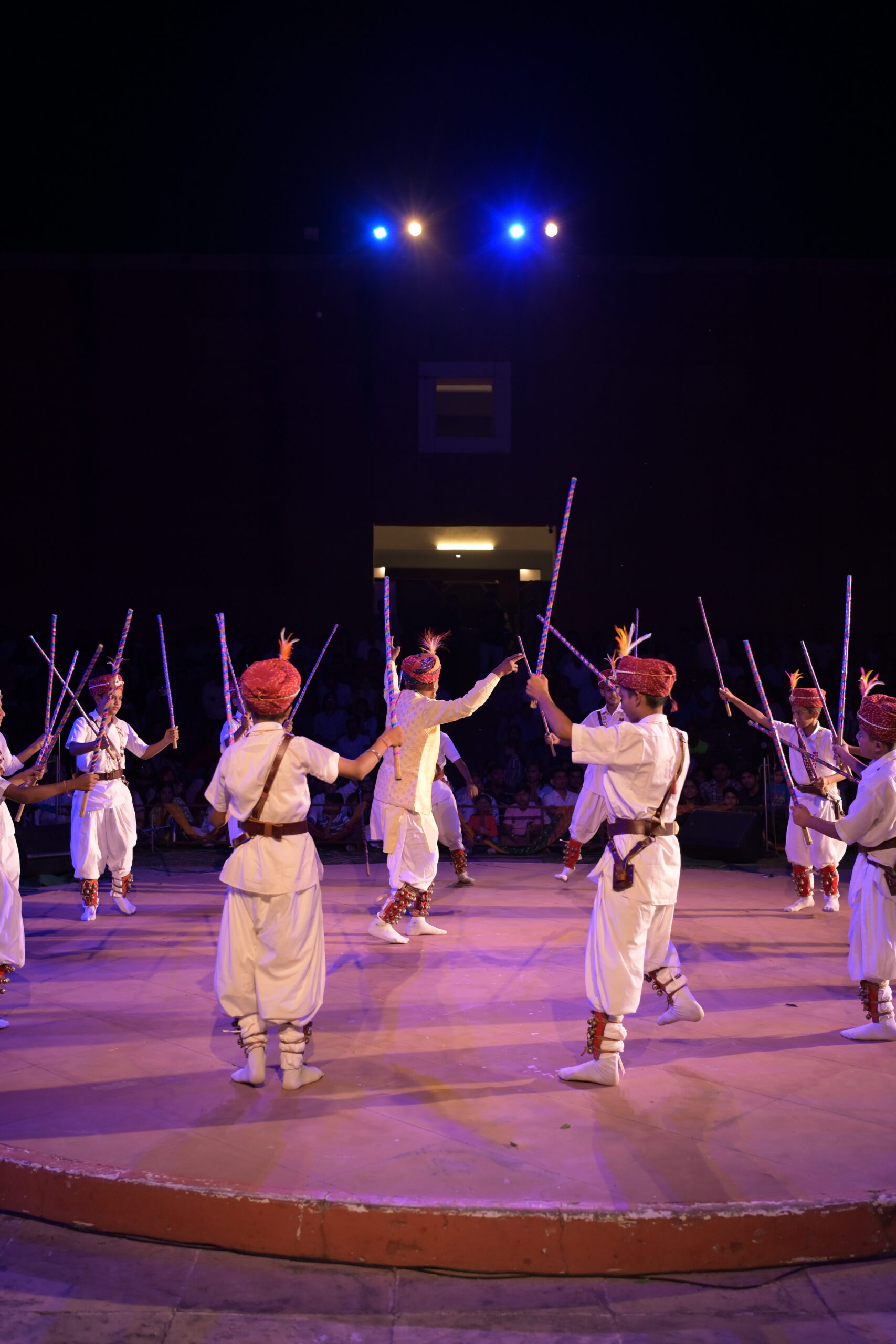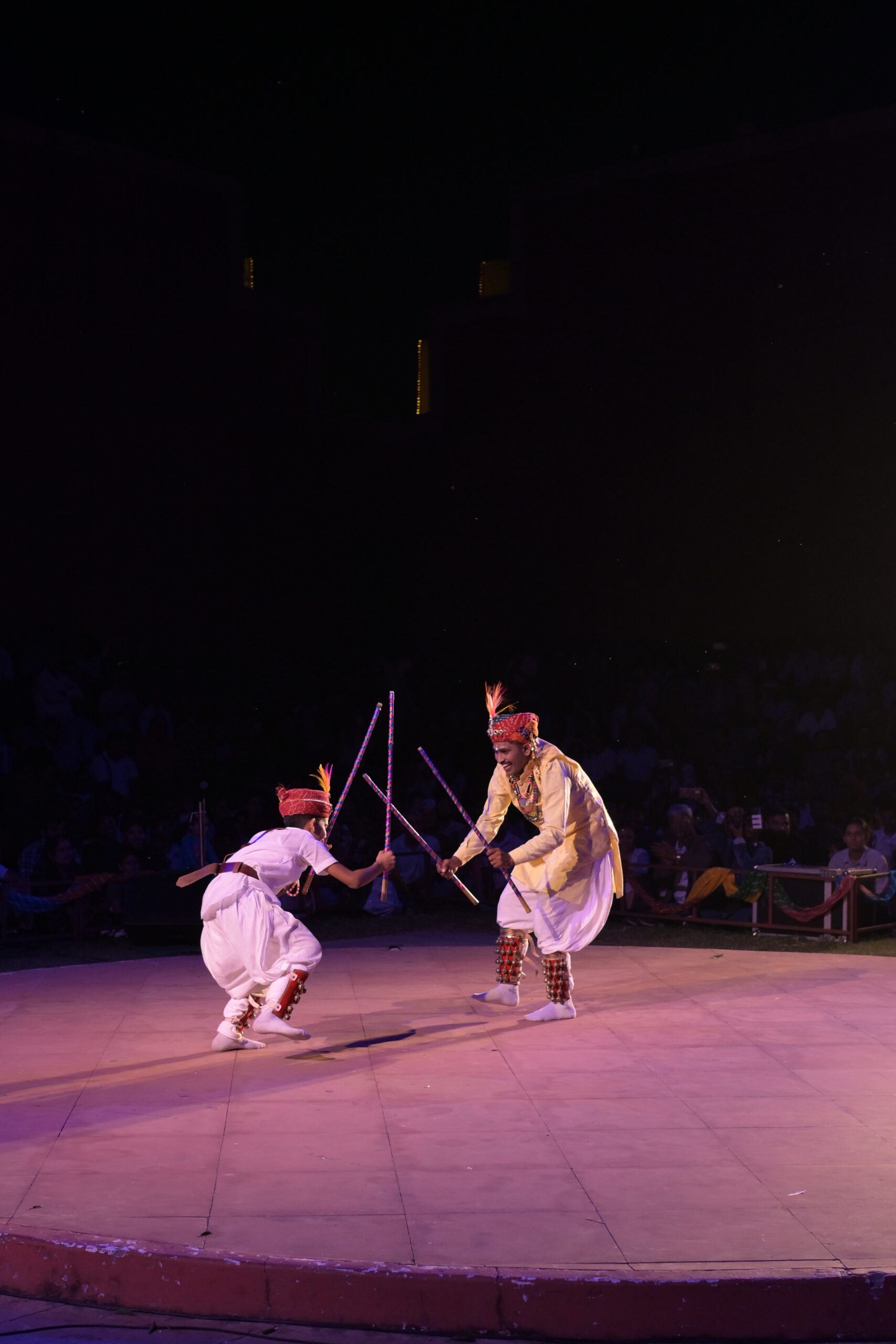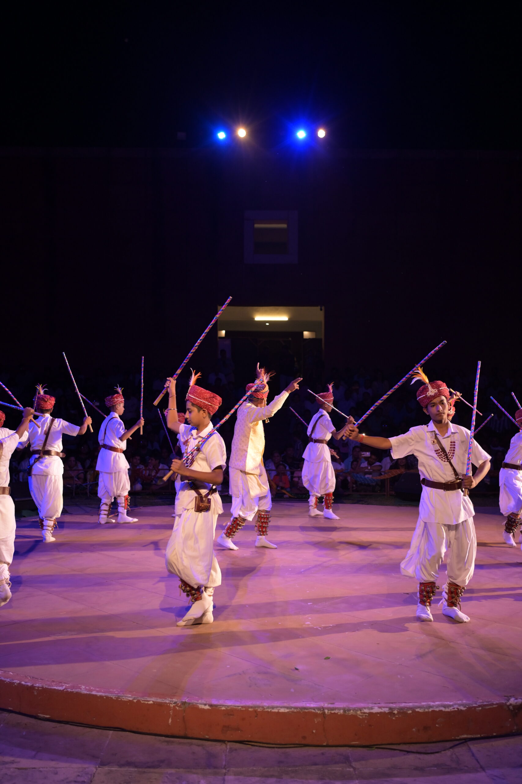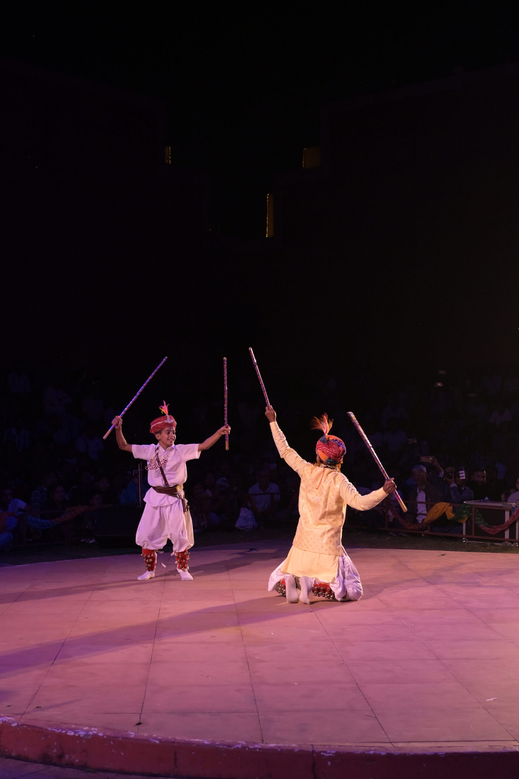 Gair Nritya is a visually stunning folk dance of Balotra village in Rajasthan’s Barmer district. This tribal dance form is typically performed by groups of men during festive occasions such as Holi. Performers create mesmerizing circular formations, rhythmically striking sticks, and wearing vibrant, traditional costumes that swirl gracefully as they move.