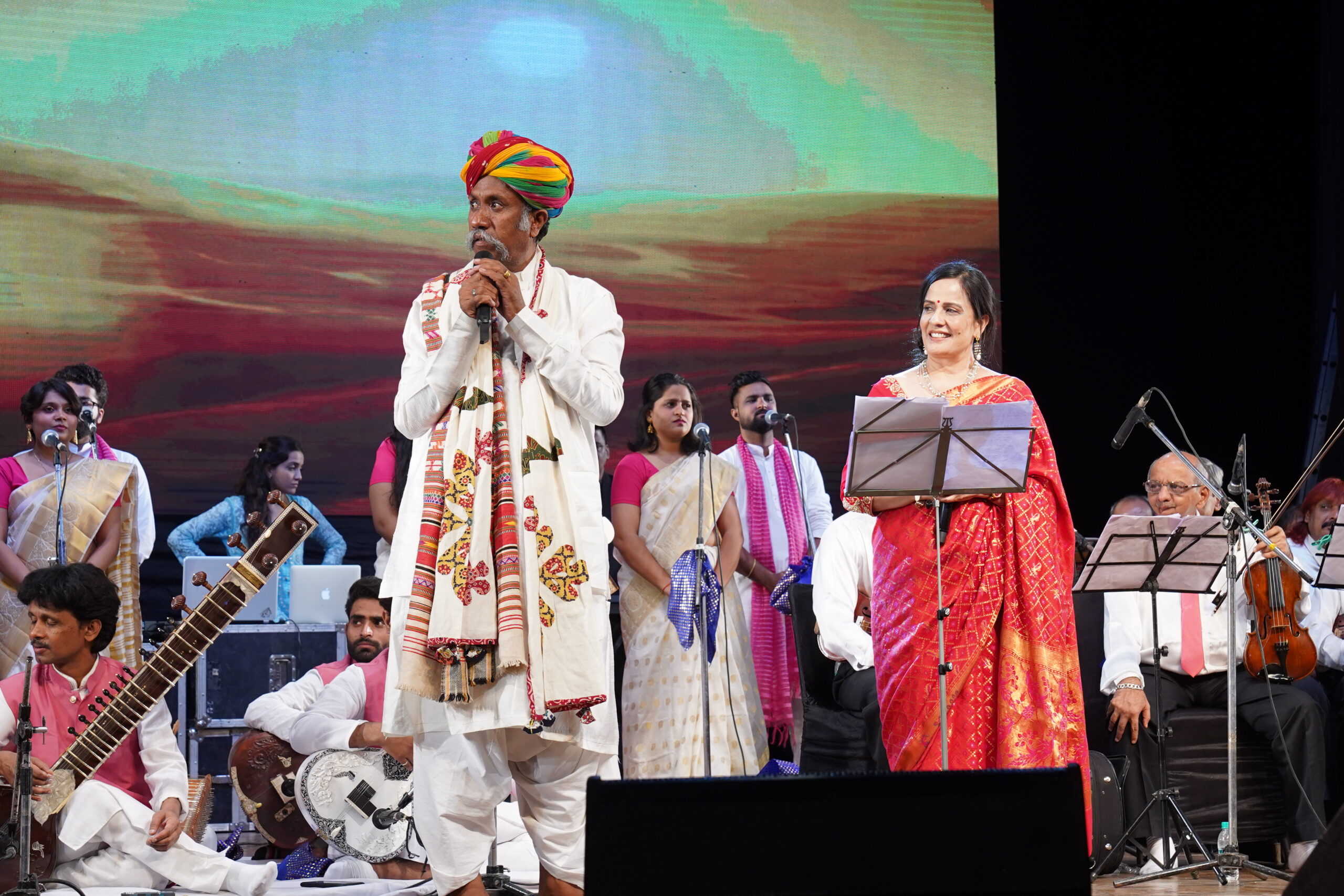 ‘Spiritual Symphony’ is a Spiritual concert. The premiere performance was inaugurated by Hon’ble Union Minister for Coal and Mines, Shri G. Kishan Reddy ji and hon’ble Union Minister of Law and Justice, Shri Arjun Ram Meghwal ji. The concert is woven with performances by globally renowned folk musician of Rajasthan, Padma Shri Anwar Khan ji and the maestro, Grammy awardee, Pandit Vishwa Mohan Bhatt ji. Ms. Manesha A Agarwal is the lead singer of the concert.